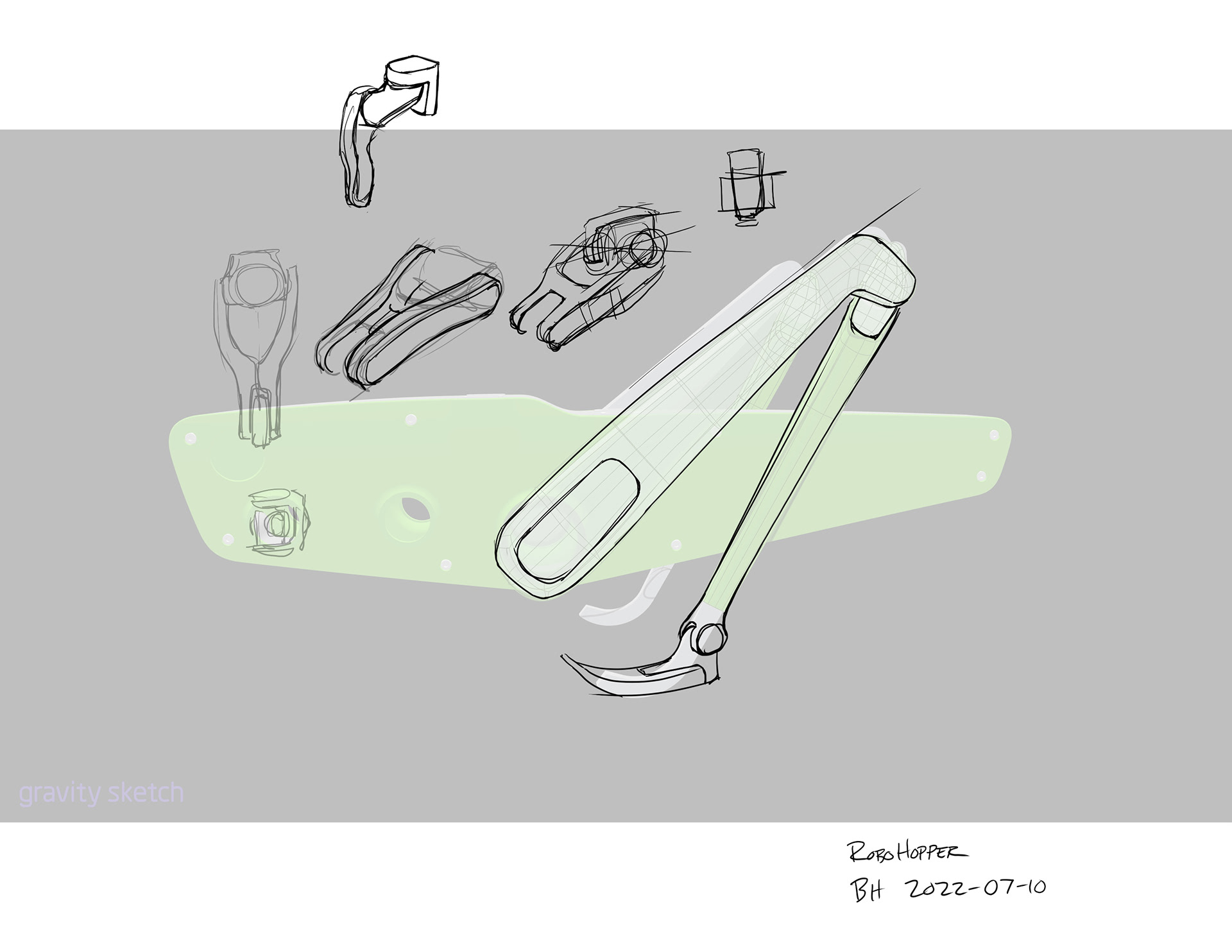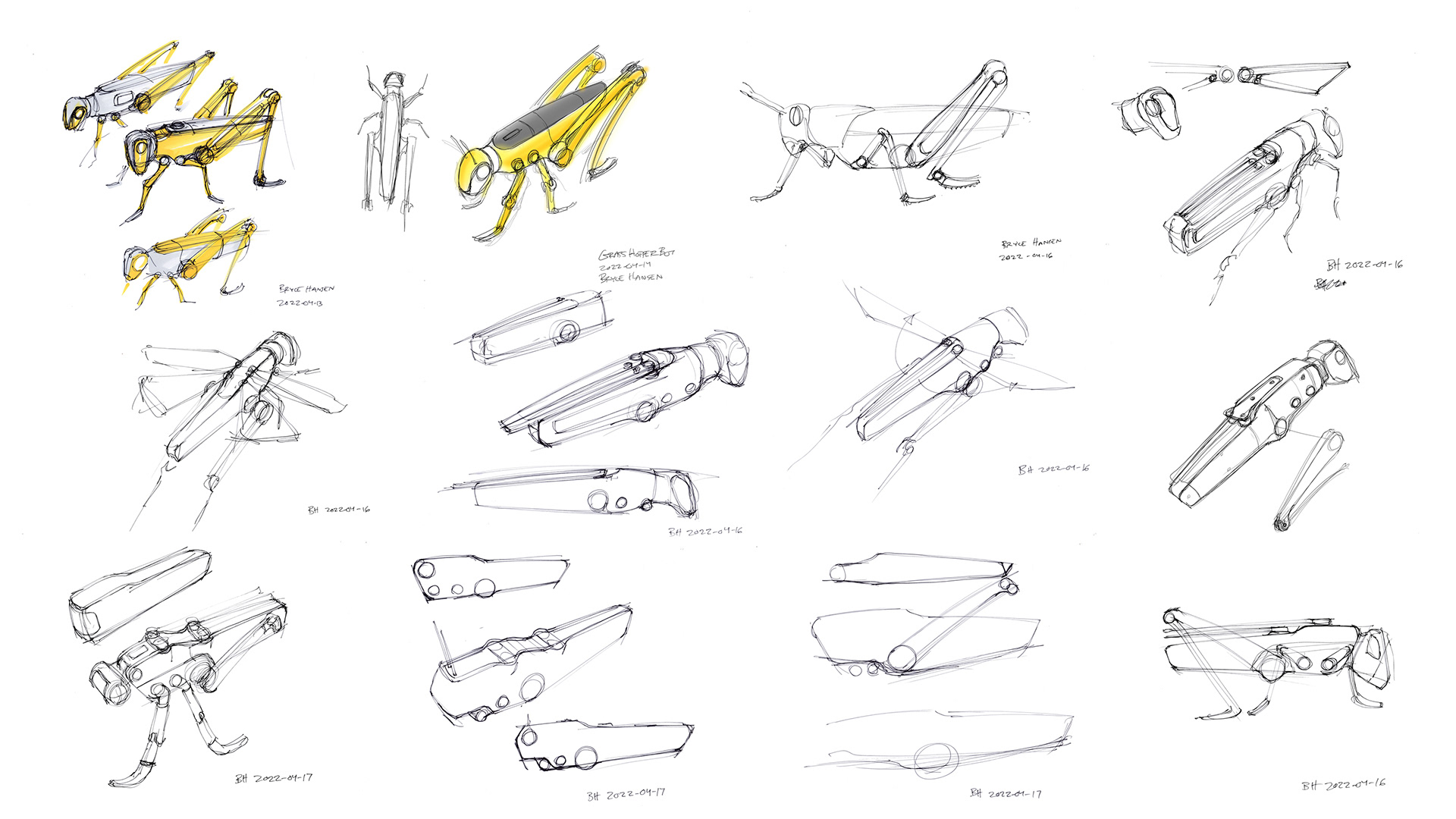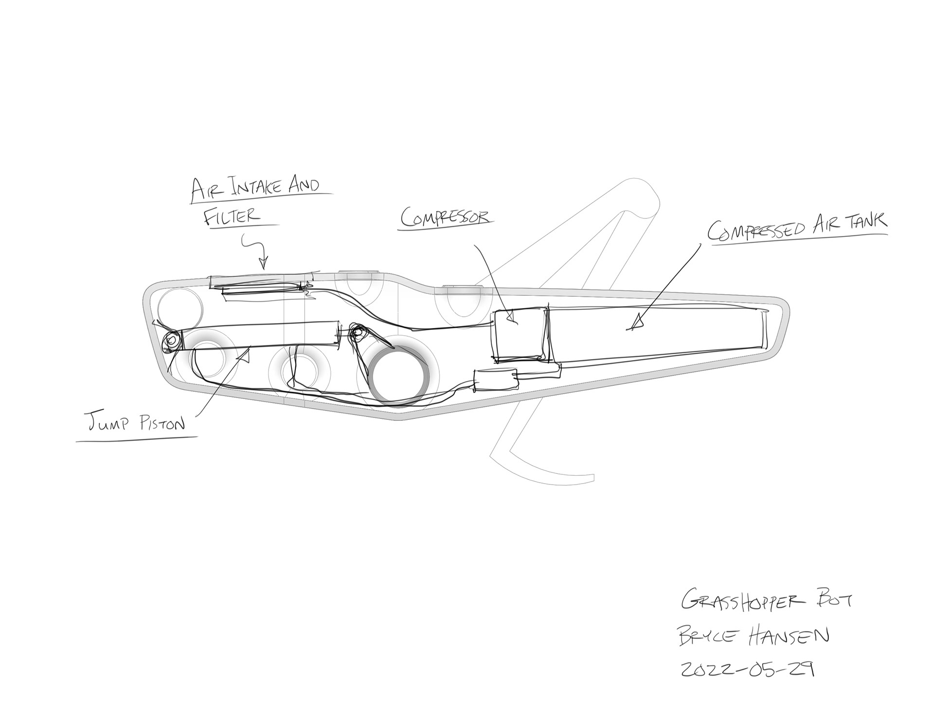 This is a conceptual robotic grasshopper I have been working on for multiple years off and on.